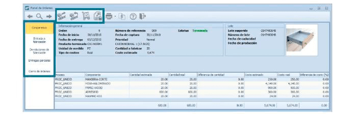 Agiliza el seguimiento de las ordenes de producción desde el panel de ordenes el cual integra información de: